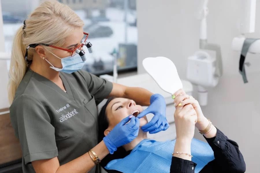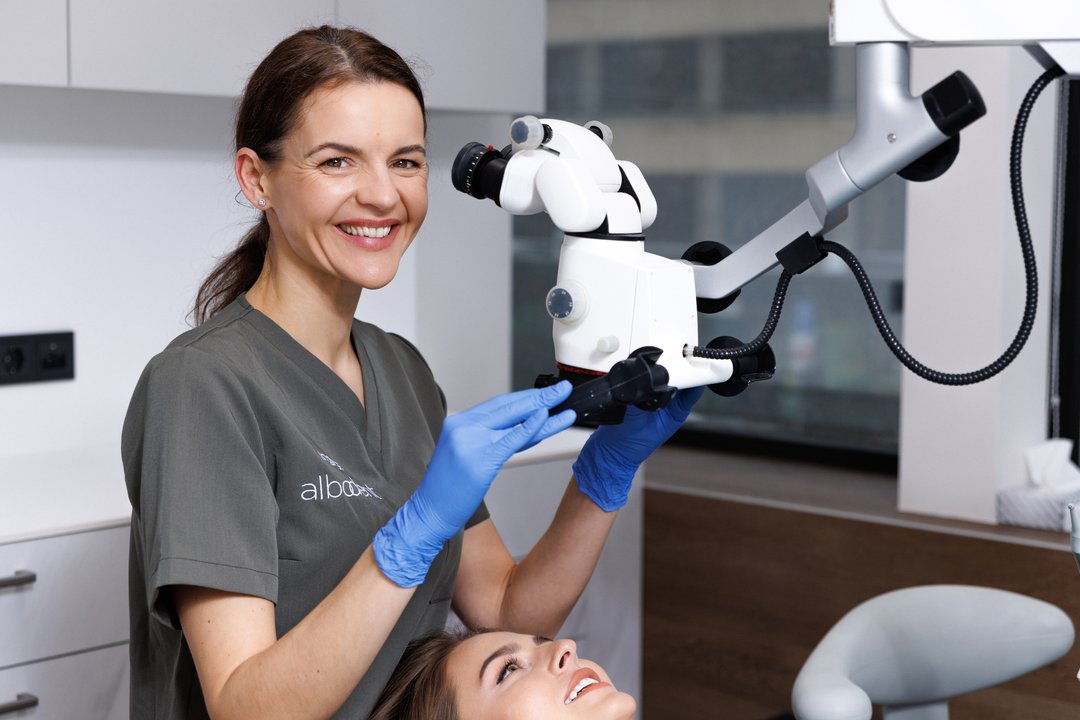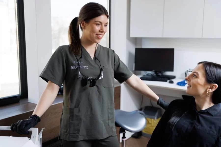 ALBODENT – Jūsų šypsenos partneris Albodent yra daugiau nei tik odontologijos klinika. Mūsų tikslas – pelnyti Jūsų pasitikėjimą ir padėti pasiekti geriausius gydymo rezultatus. Nesvarbu, ar atvykote konsultacijai, ar spręsti skubios problemos, mes esame pasiruošę Jums padėti. Kiekvieną gydymo žingsnį aptarsime ir pasiūlysime kelis sprendimo būdus, kad galėtumėte pasirinkti Jums tinkamiausią. Mūsų klinikoje siūlomos paslaugos: beskausmė dantų implantacija, dantų protezavimas, estetinis protezavimas laminatėmis estetinis plombavimas, dantų tiesinimas kapomis, dantų kanalų gydymas (endodontija), protinių dantų šalinimas ir kt. Beskausmės implantacijos sėkmės rodiklis viršija 99%, todėl galite būti tikri dėl gydymo saugumo ir efektyvumo!
